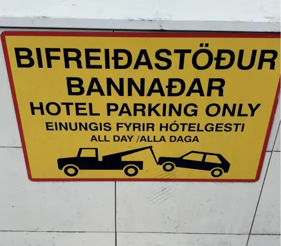 In front of the lobby are parking spaces that have the tow-away sign. Those are guest parking spots mainly for smaller vehicles.
